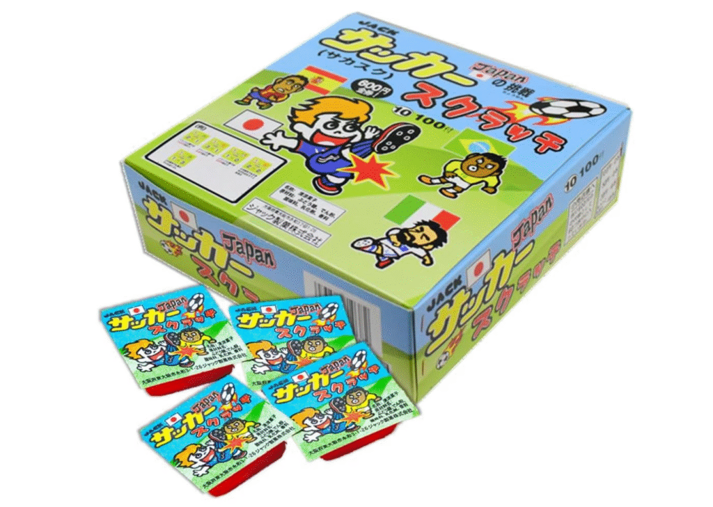 続いて紹介するのは、こちらの「サッカースクラッチ」。”はがし紙”をはがすと、日本 vs ○○がサッカーの試合結果が裏面に書かれています。日本が勝てばあたり券をゲット!引き分けならもう1回引けます!